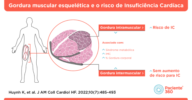 Novo estudo sugere que um alto nível de infiltração de gordura intramuscular está diretamente relacionado com um alto risco de desenvolver insuficiência cardíaca. A comparação foi realizada independentemente de outros fatores de risco cardiometabólicos associados.